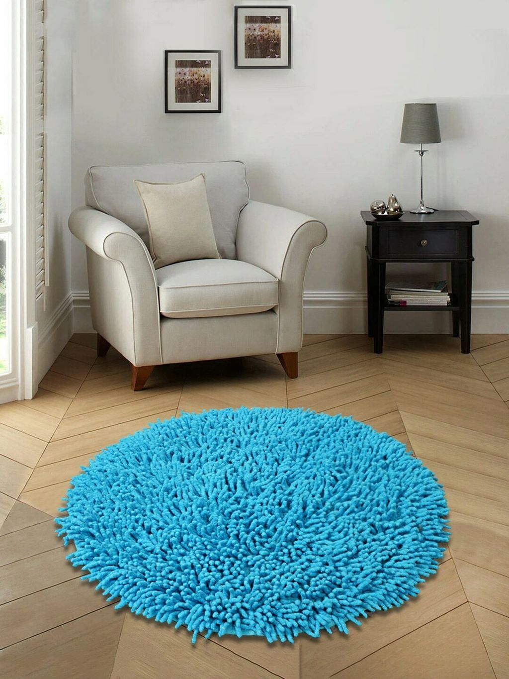 Turquoise Blue Solid Cotton Anti-Skid Shaggy Round Bath Mat II